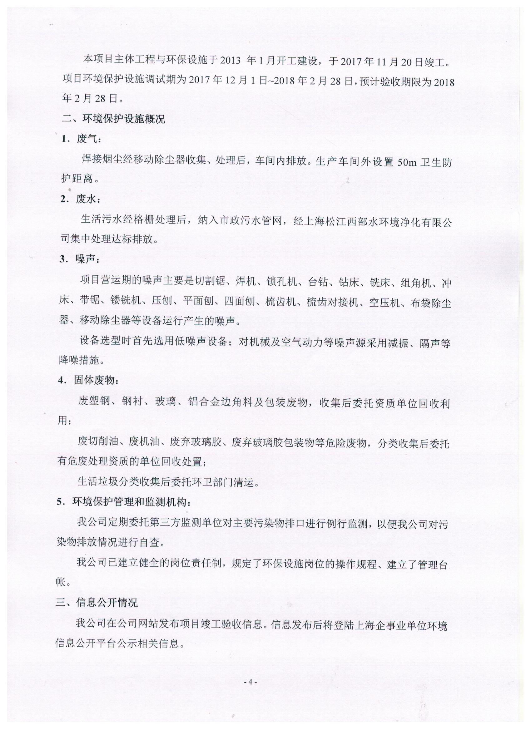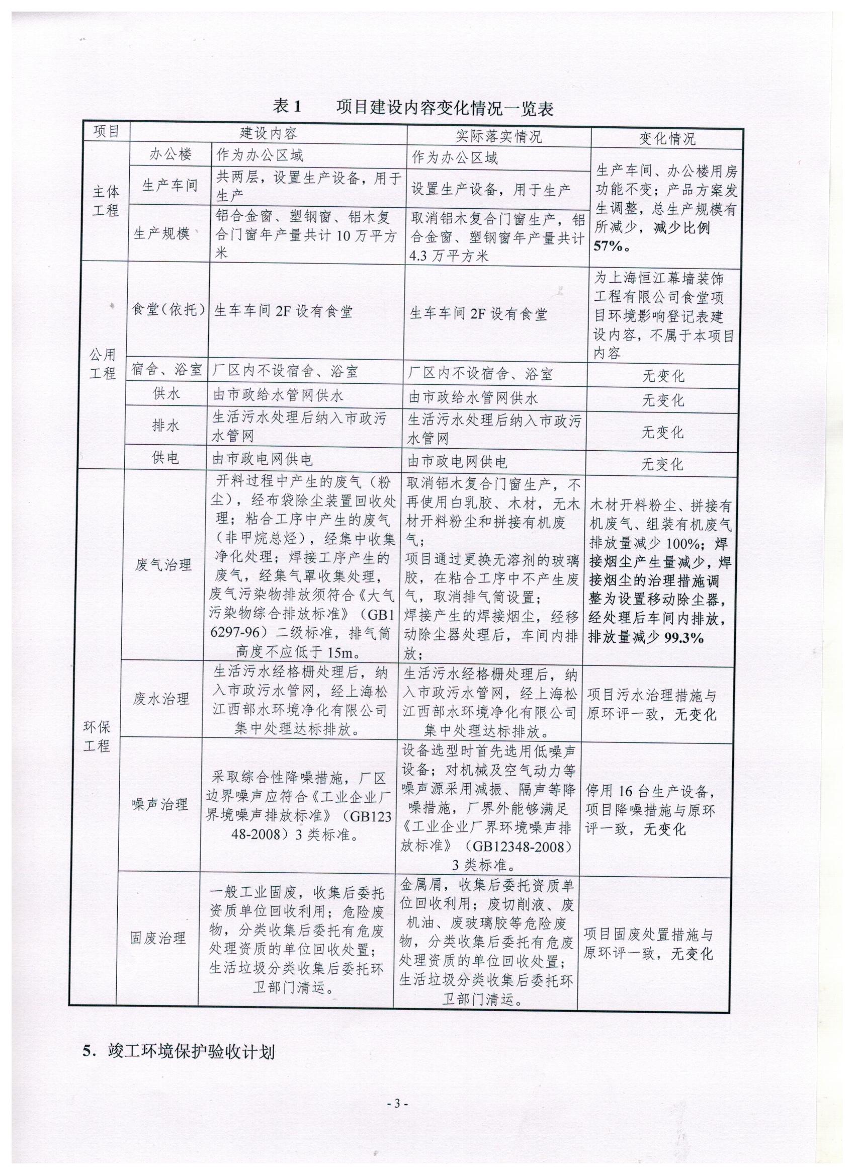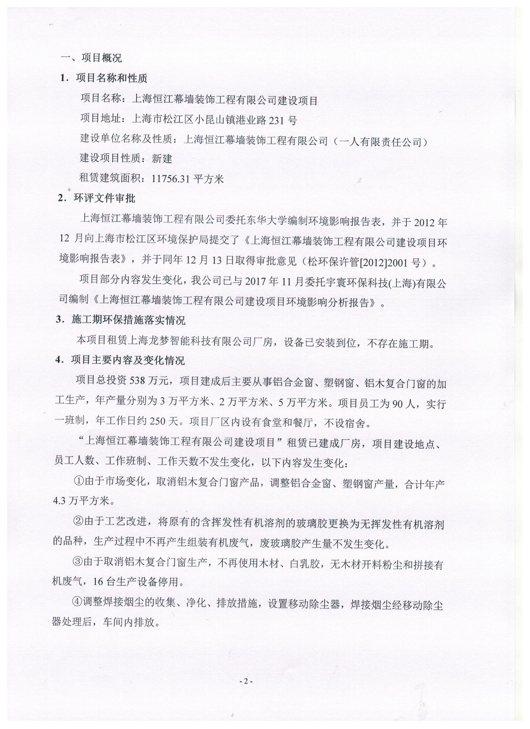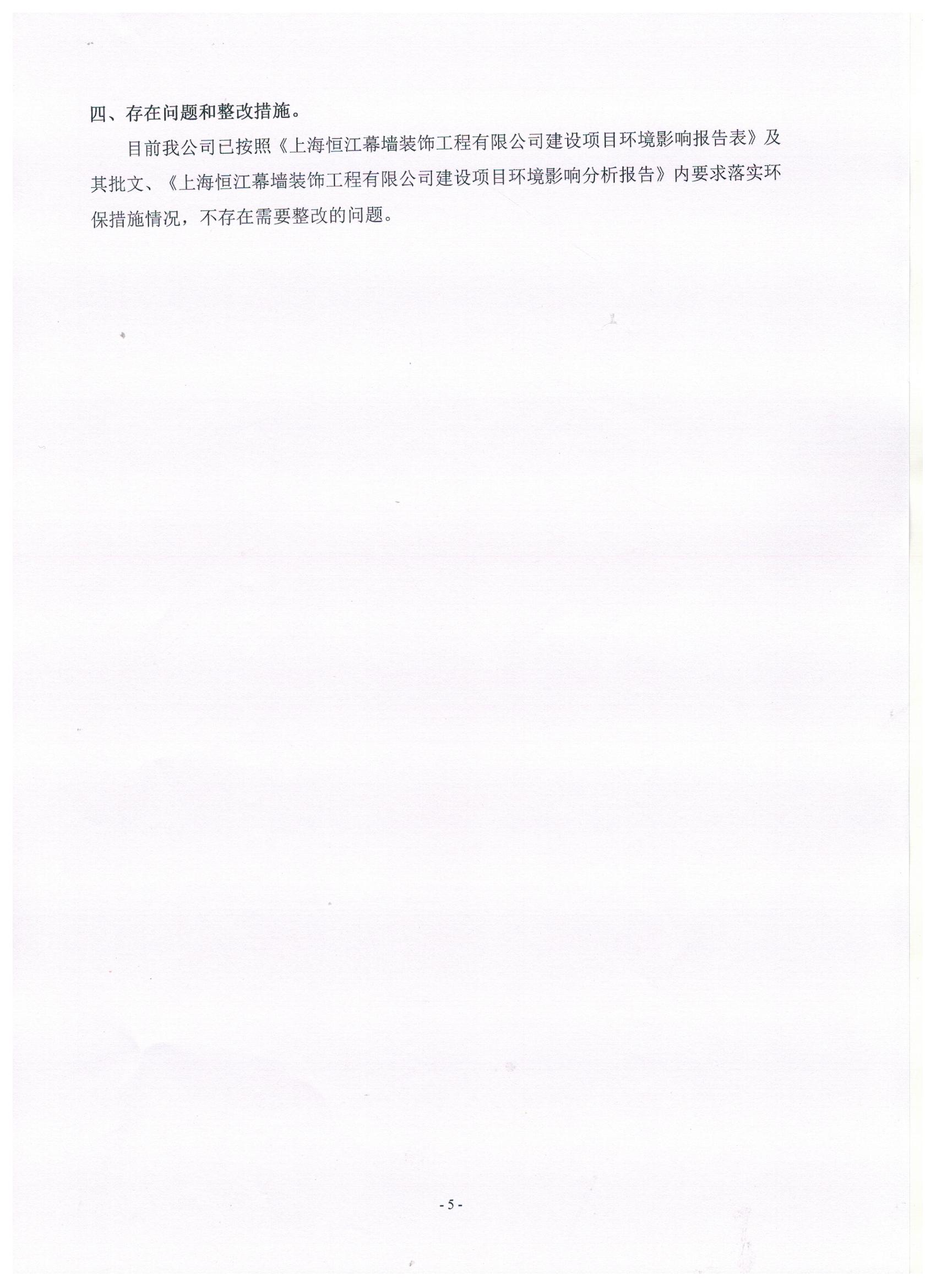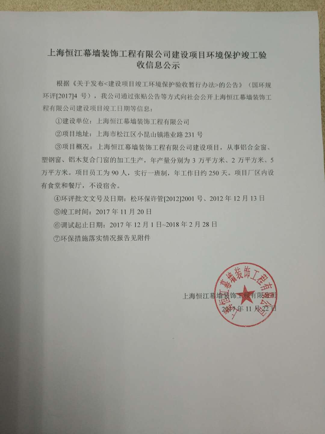 上海恒江幕牆裝飾工程有限公司環境保護竣工驗收信息公示一
