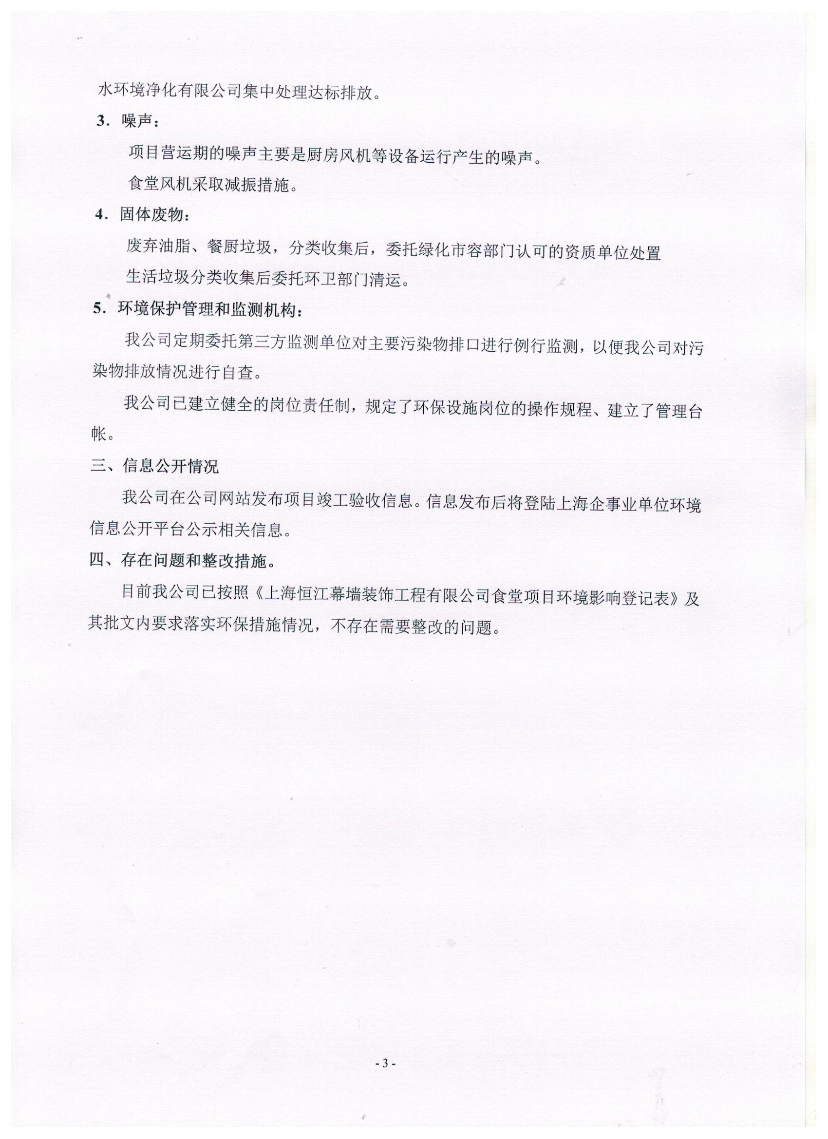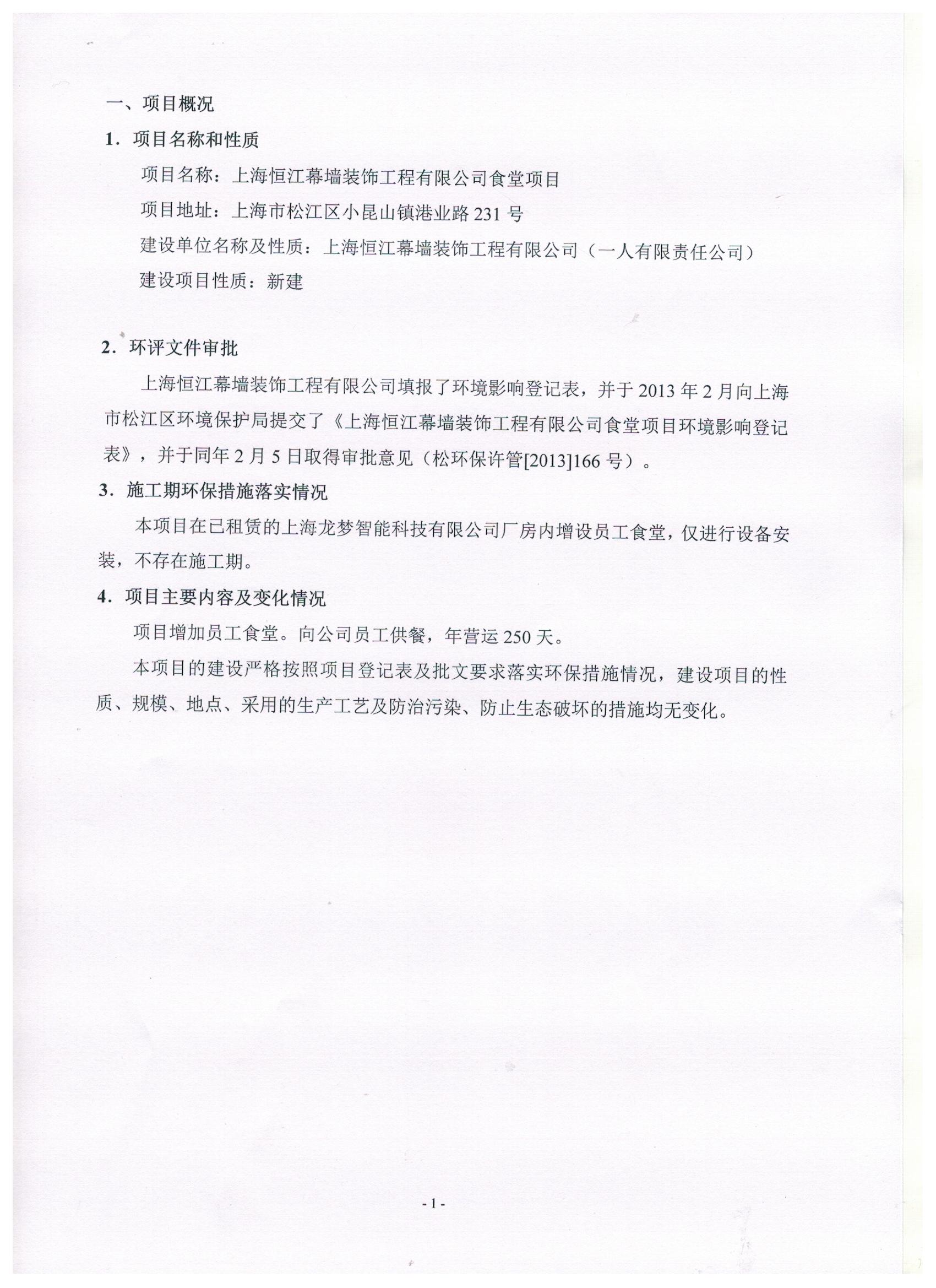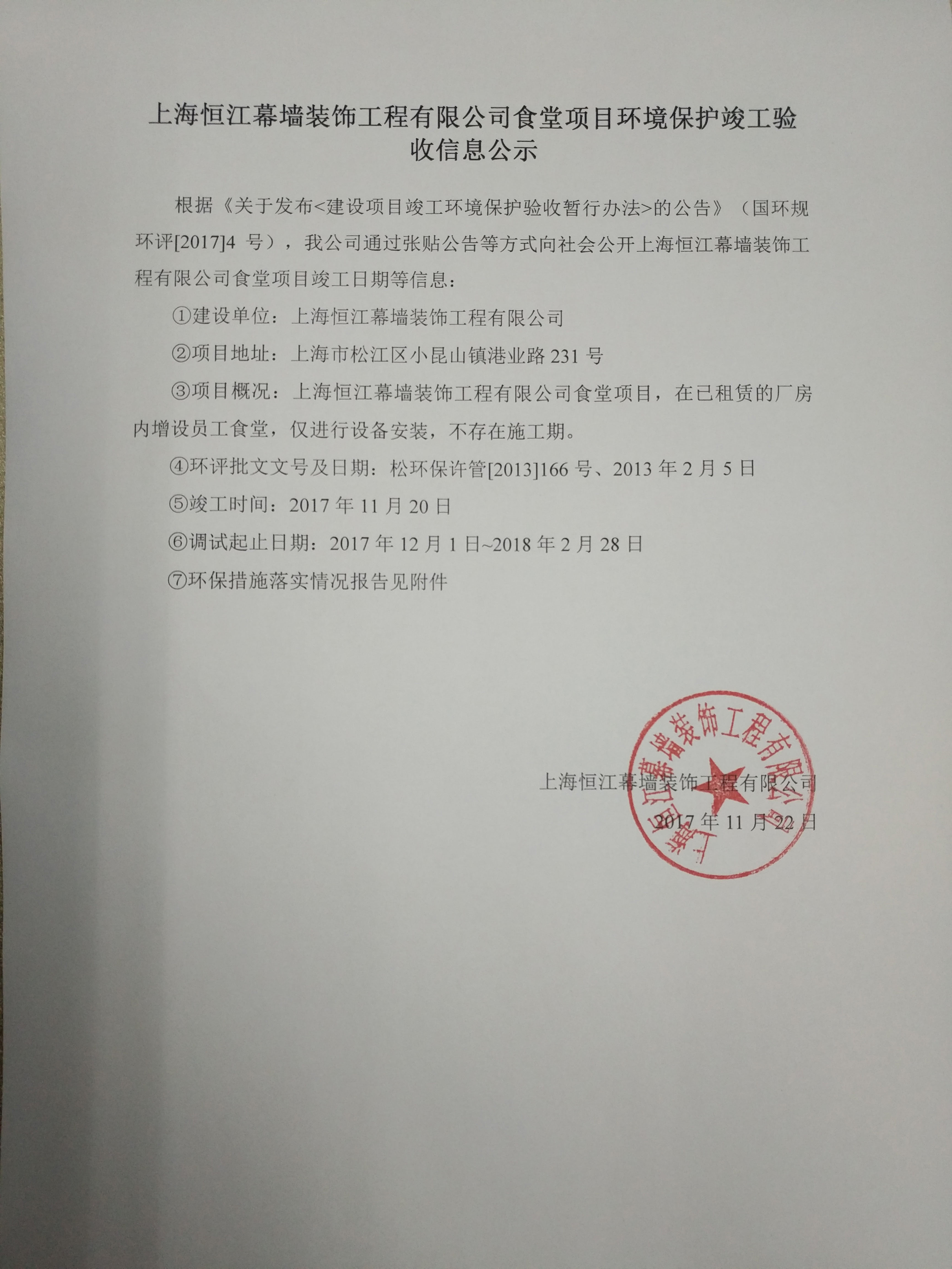 上海恒江幕牆裝飾工程有限公司環境保護竣工驗收信息公示二